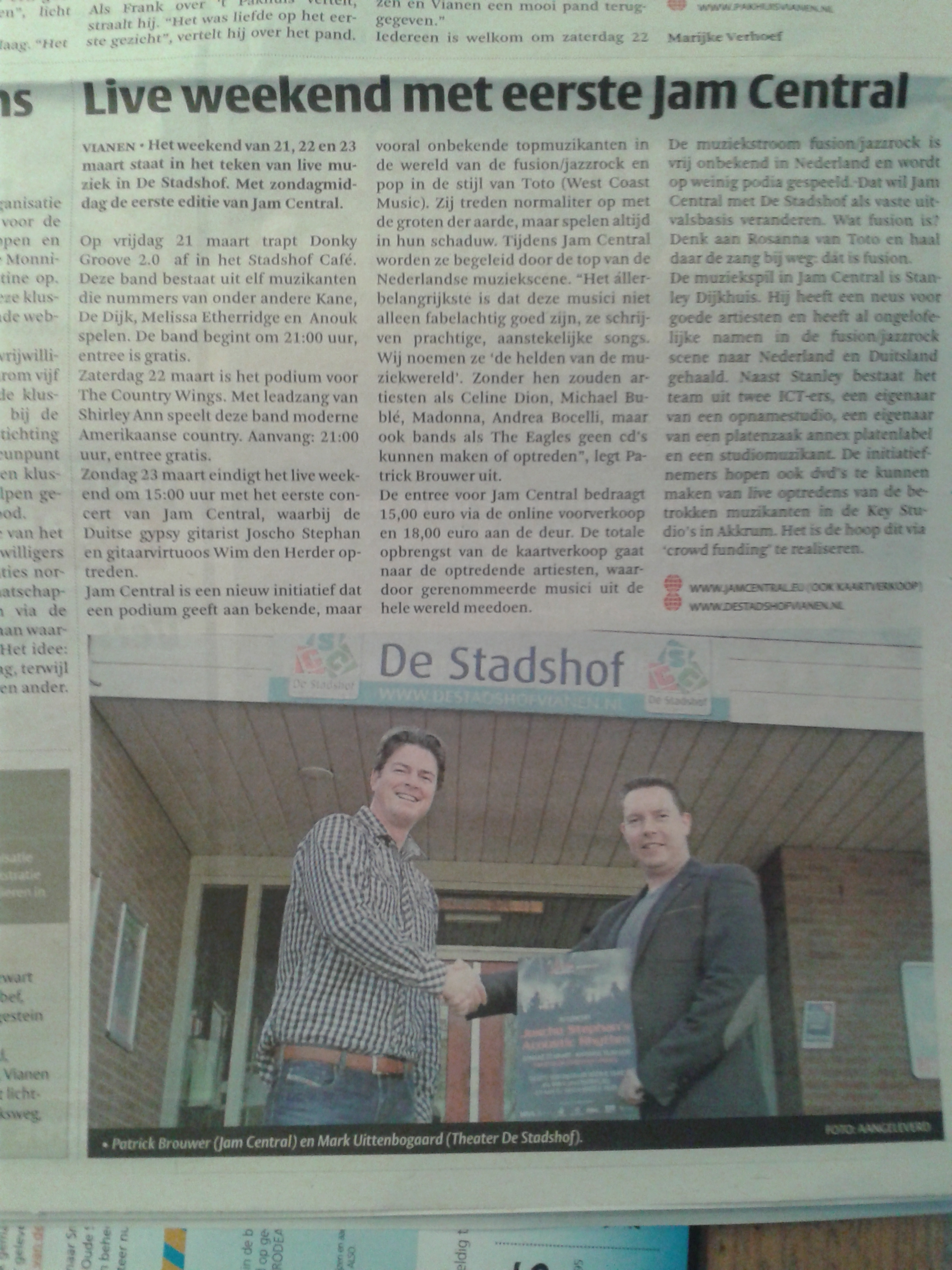 Voor aankomend weekend in Theater de Stadshof ook nog een leuk stuk in het regionale blad 'Het Kontakt' waarin ook weer uitvoerig gesproken wordt over het komende concert van Joscho Stephans Acoustic Rhythm op 23 maart. Dit onderstreept ook weer de klasse van dit initiatief! Vergeet geen kaarten te bestellen want een concert met Joscho Stephan samen met Wim den Herder wil je gewoon niet missen!